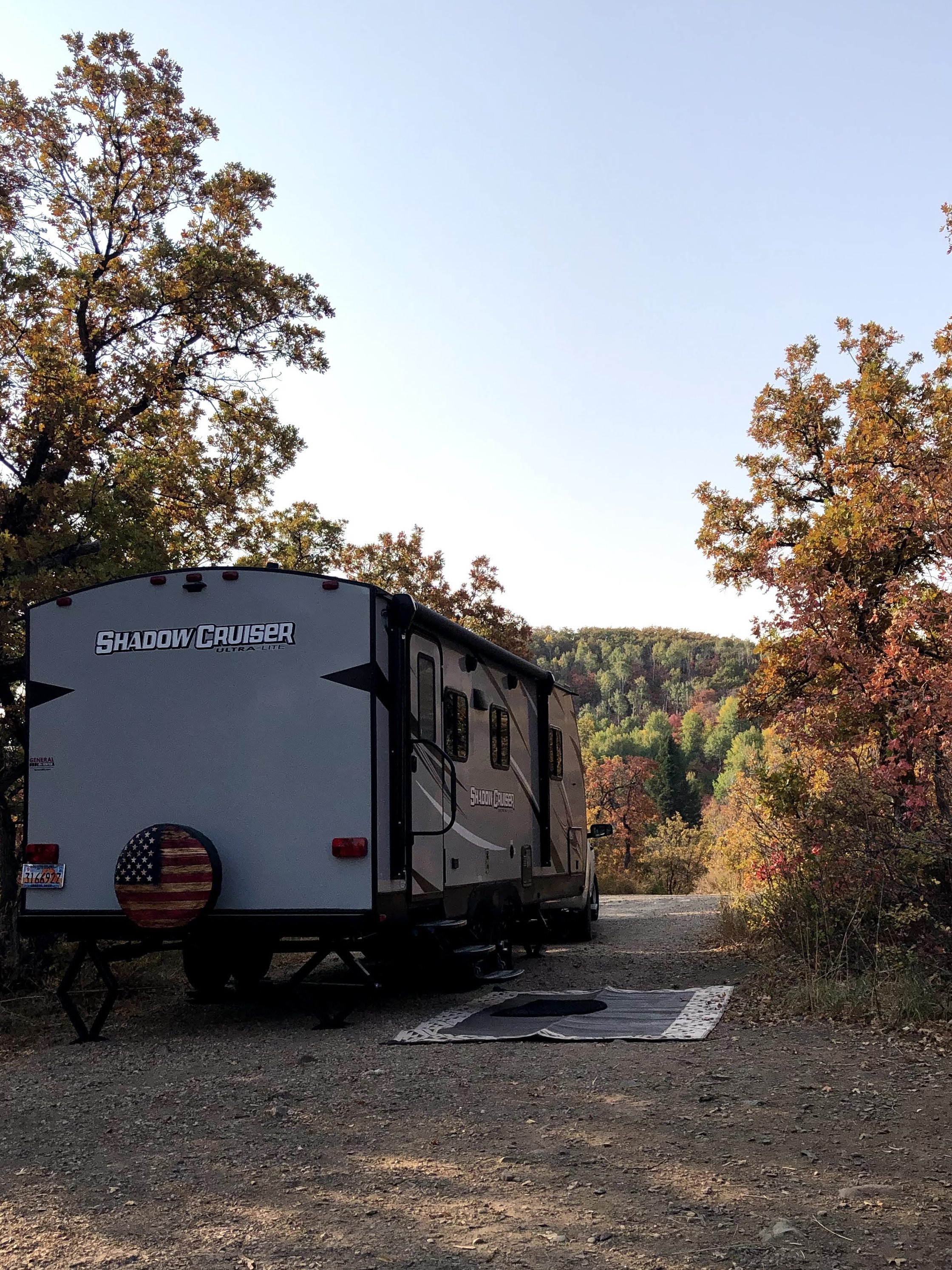 Thursday, August 27, 2020 I got a call from the dealer in Bozman, MT that one has sold. That afternoon, we went to General RV in Draper. Jefferson Moser asks us how much we want to spend, first thing. That was impressive because he never wavered from it. He drives us in the little golf cart to the upper lot and shows us a 2020 Shadow Cruiser 225RBS and we absolutely “love” it. We saw two others but the kitchens were tiny and the floor plan was choppy with bedroom walls and doors. We bought it immediately! We were told by several salesmen that, like us, many people wanted to travel or get away and aren’t able to because of all the restrictions and so people bought travel trailers and camped locally. The new truck needed a special trailer brake put on and they couldn’t do it until Tuesday. Jefferson said some people had to wait more than 2 weeks this summer. That would have been very sad.
