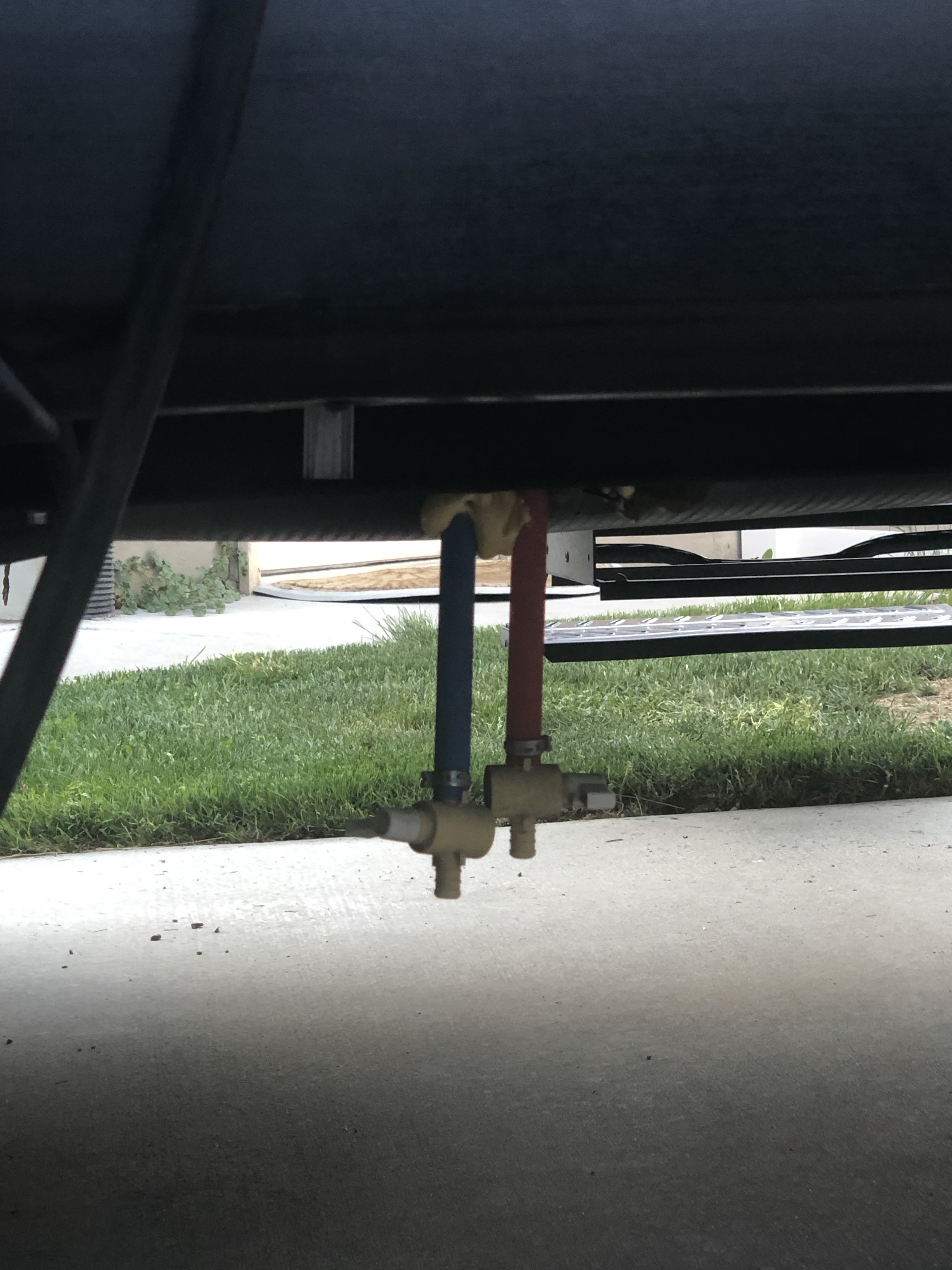 - I then opened the drains for the hot and cold pipes. On my trailer, it is just under the city water hookup.