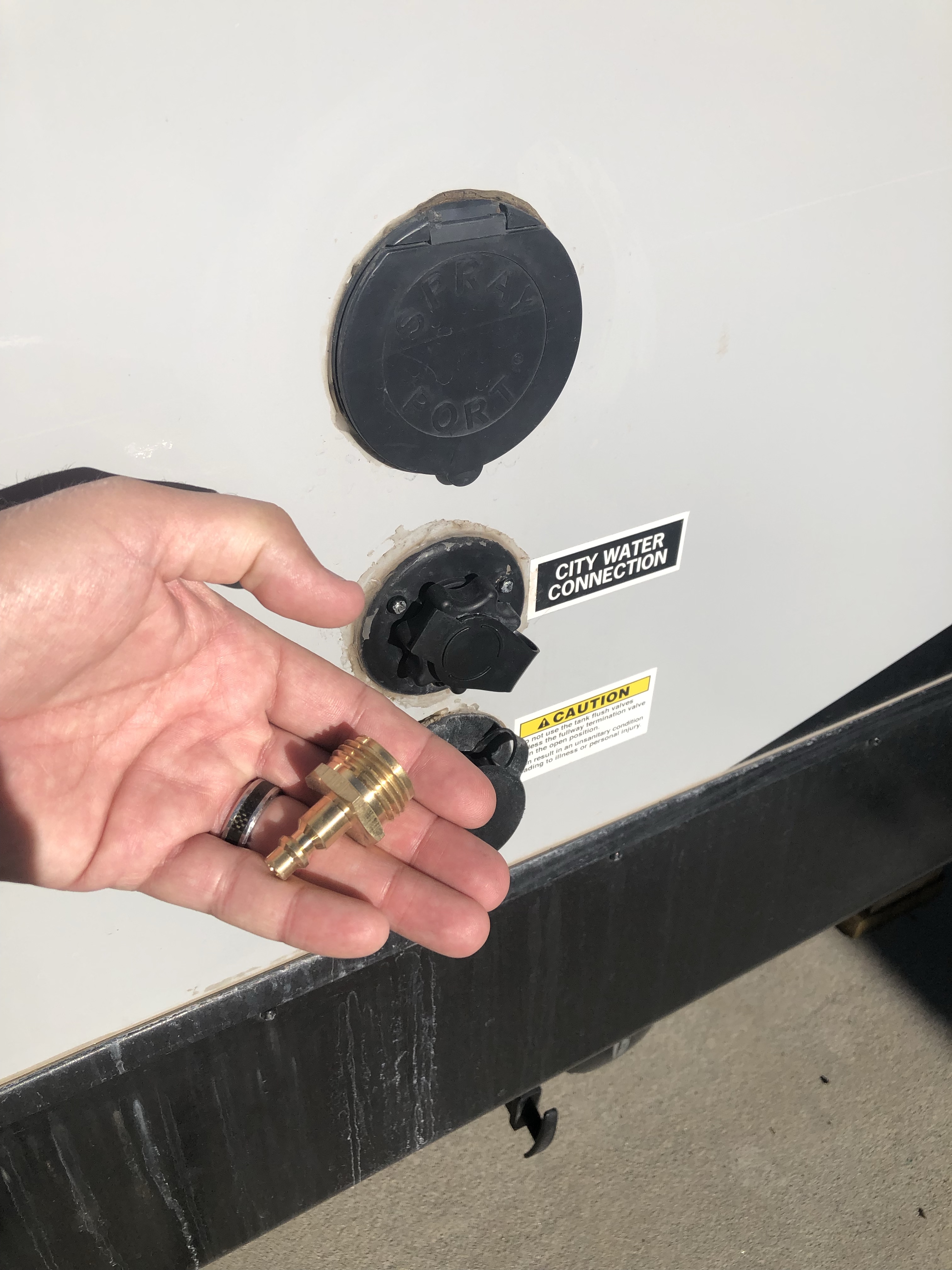 - Then I used a special fitting that attaches to the city water connection. This will connect an air hose to the city water connection.