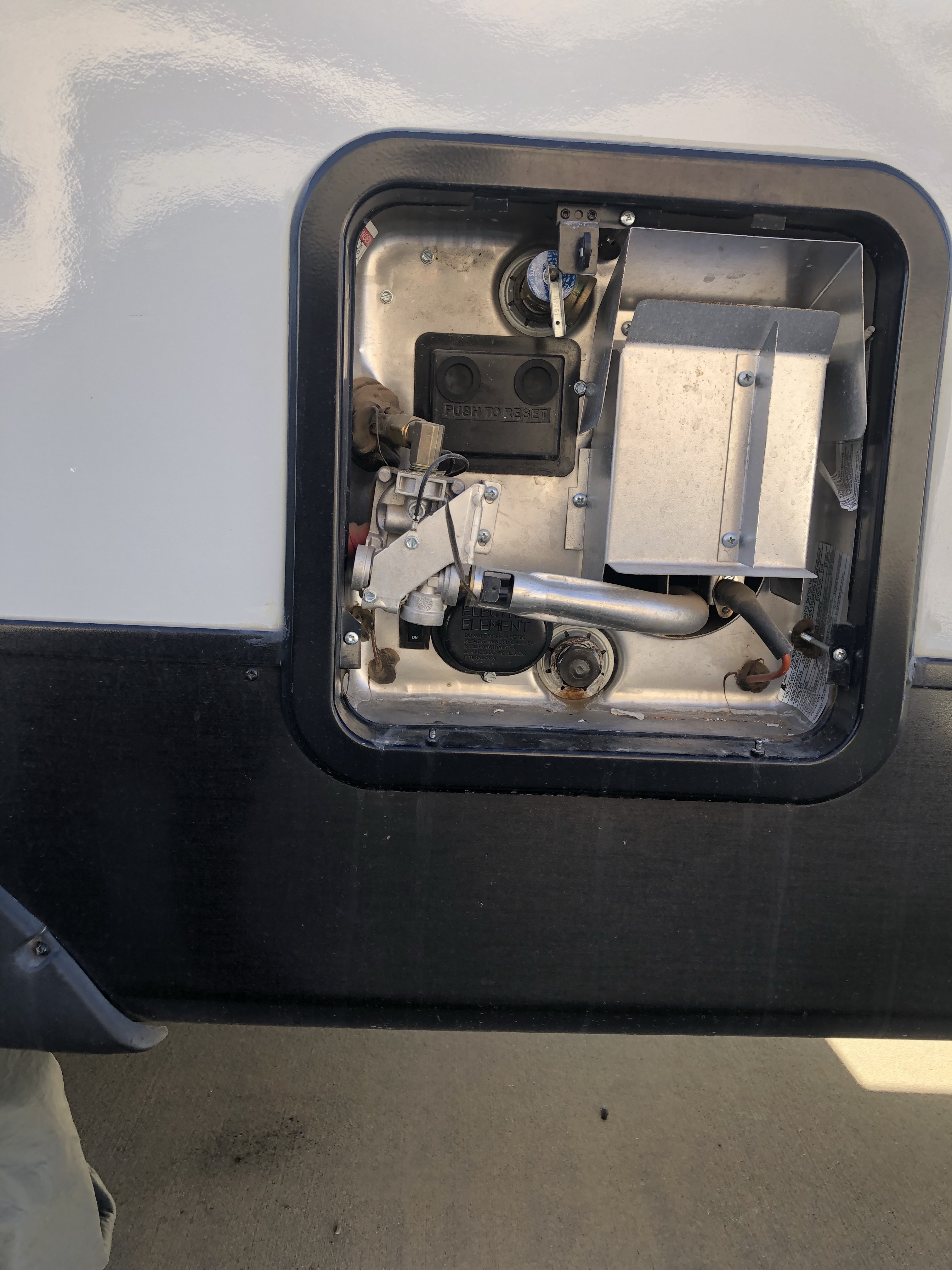 - Hot water heater. We turn the water heater off the night before, to let it cool down a bit. Turn the air compressor off. (see story below) relieve pressure in the heater by opening the pressure relief valve. Then remove the anode at the bottom of the water heater. This will take time to drain, I leave the anode just below where I removed it, and close everything up……time for a story. The water heater needs to be drained. The first time I did this, I left the air compressor connected and running – building pressure in the system. When I removed the plug/anode, water shot out 6-8 feet after it shot me right in the chest!