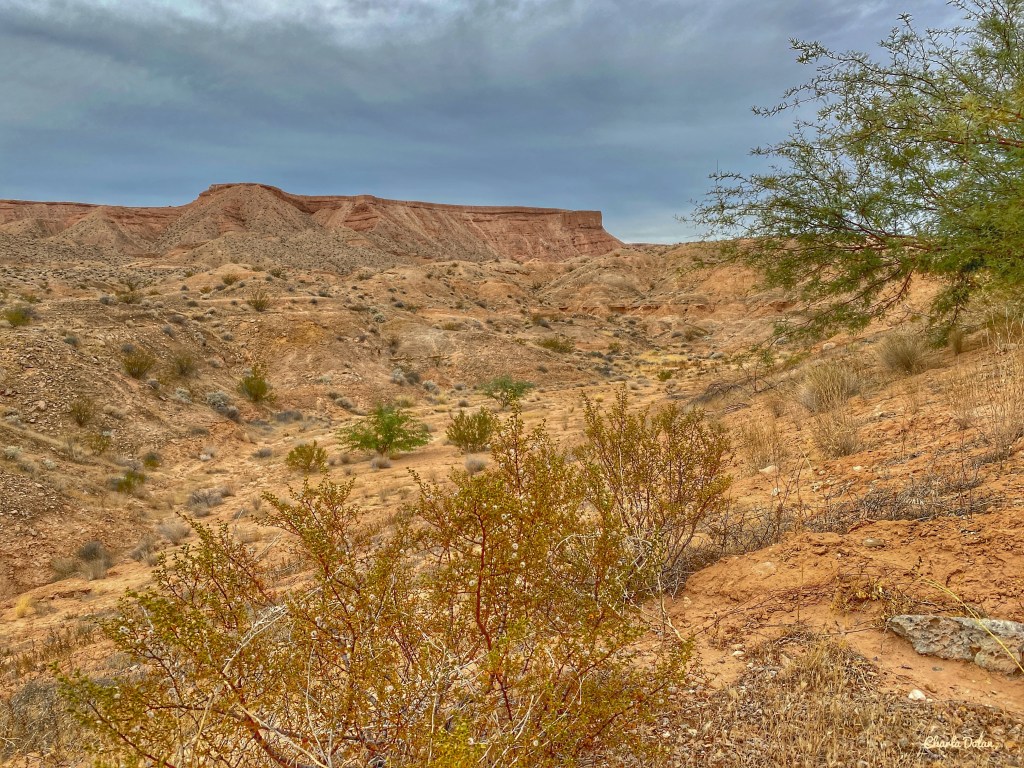 Saturday I made eggs with pre-cooked turkey sausages. They were pretty good. We spent the day driving around Mesquite, NV, Scenic, AZ, and Beaver Dam, AZ. We really like Scenic; was surprised at all the gravel roads. We saw quite a few “pads” with electricity, water, and sewer for RVs. Interesting to us, for sure. We drove to the sign of Gold Butte National Monument on very rough roads. Will be back tomorrow. Back to campsite around 3:00, hung out and then had pulled pork sandwiches and potato salad for supper.