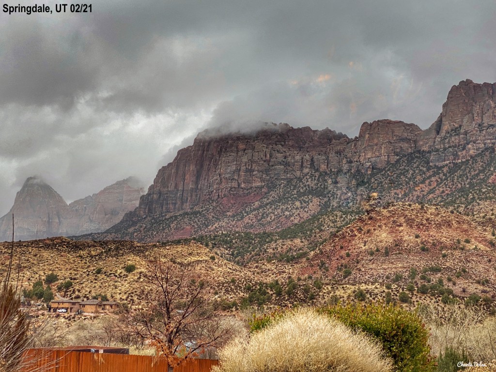 View of Zion National Park from Stage Coach Grill, Springdale, UT Feb 12-15,2021