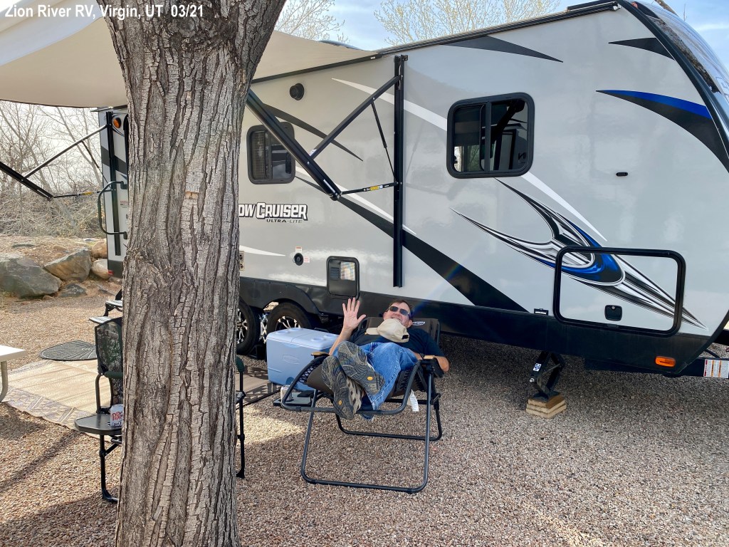 11th – Days 58-60, Mar 19-21, 2021, Zion River RV Resort, site 118