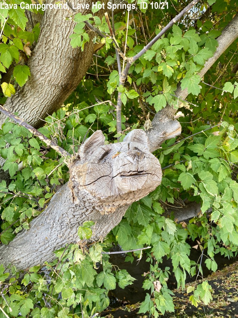 Saturday 10/02/21 We woke up and headed to the hot springs at 9:00 am when they opened. The temperature outside was 39 degrees. The mineral springs are very unique in that they don’t have a sulfur smell. Good! There are 5 mineral pools, all heated naturally. The coolest one is approximately 102-105 degrees. The hottest one is approximately 112 degrees. The water felt wonderful. It is so clear you can see the bottom of the pools: some have stone that looks like flagstone and others have tiny gravel-like rocks. We hung out mostly in the “cooler” pool for 2 hours. It wasn’t busy at all and had only about 2-4 people in each pool.We got out and drove the few miles back to HOWE where we changed. Kevin had seen on YouTube videos that the place to eat in Lava is Chuckwagon. We were hungry, as neither of us had eaten breakfast. We got there at 11:15 and there was a wait. The hostess had us go to a “waiting room” which looked to be an overflow room with table and chairs. They had a nice video running on the TV of the history of the area. We liked that. 15 minutes later we were seated. This place is a mom and pop sort of place. We ordered our food and kid you not, waited more than 50 minutes to get our food. As I watched, I saw the cooks must have been short staffed because they had 15 tickets on the roundy-thing all the time. Once we got our food, it was disappointing. My favorite food in the world is mashed potatoes and these weren’t good at all…they were mushy like baby food. I couldn’t even eat them. Finally got out of there at 1:00 pm. We did what we enjoy doing: driving around town. The houses and yards look pretty well kept, for the most part. The area is so pretty with pops of Autumn colors all around. For being October, there were still some patchy green grasses in the non-watered pastures and fields.
