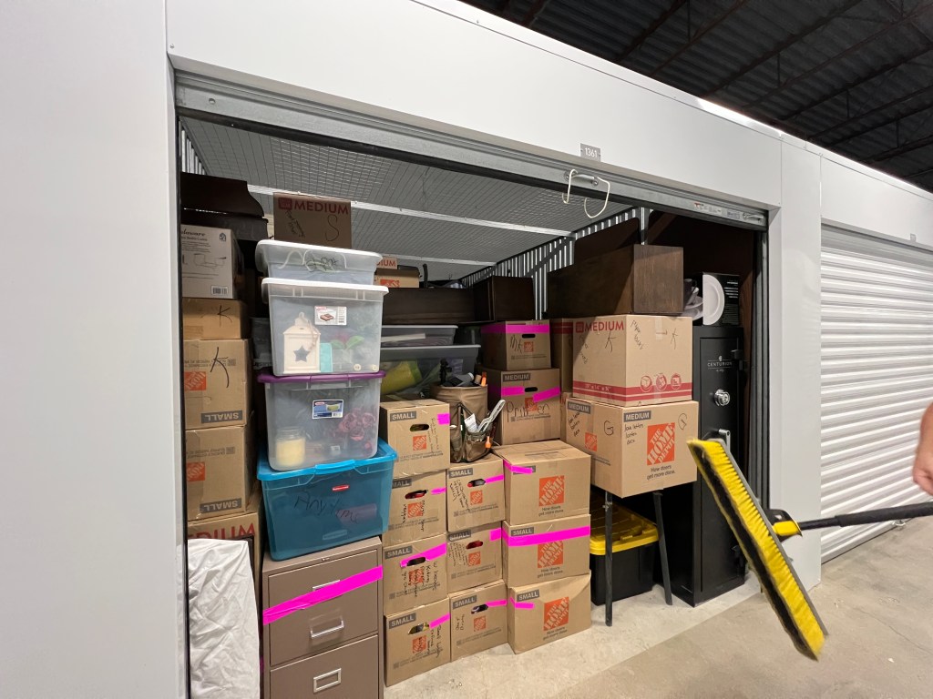 All our things for our “home base” house fit in 10×20 ft storage container. Pink Duct Tape means Charla wanted those close to the door in case we need something while the “home base” is being built.