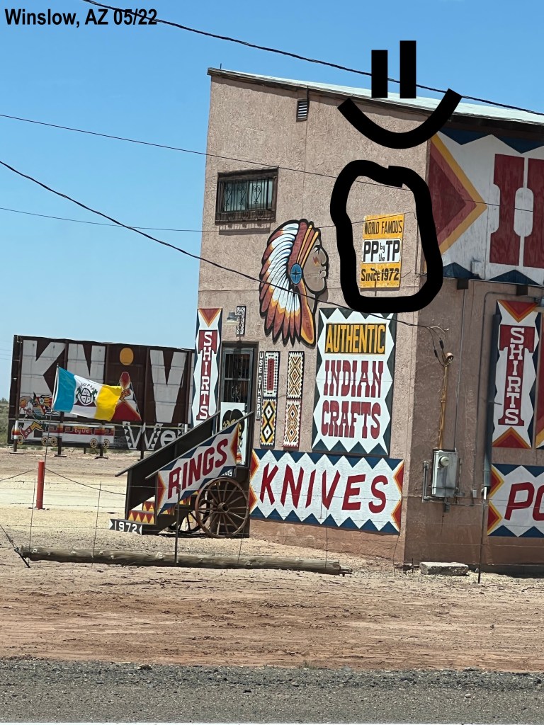 On our way to Homolovi Ruins State Park, I saw a place with signs “Authentic Indian Crafts”. What caught my attention was this: PP by the TP. I laughed soooo hard! In other words, the pee-pee is by the tipi.