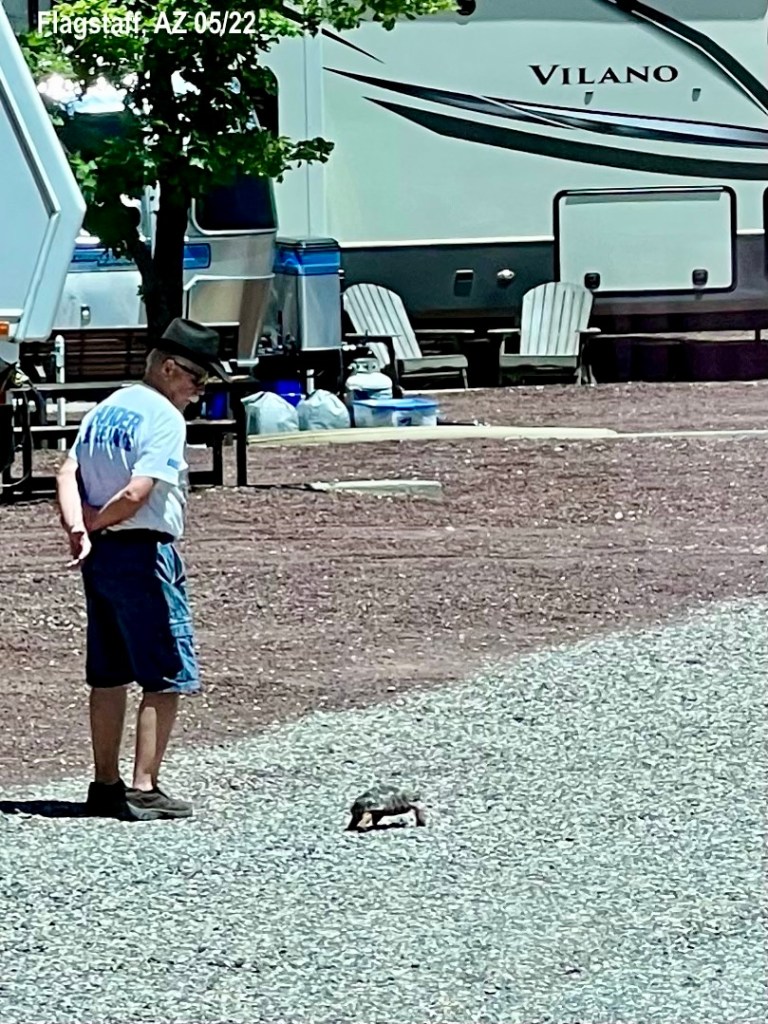 So glad we made the decision to not drive HOWE (this is the name we gave our 36 ft 5th wheel: Home On WhEels) east yesterday. The wind finally calmed down a little but still is blowing all day. The campground owner says this is normal for Flagstaff through mid-June. Yikes! We slept in and then drove our car to Maverik gas station for gas and donuts.