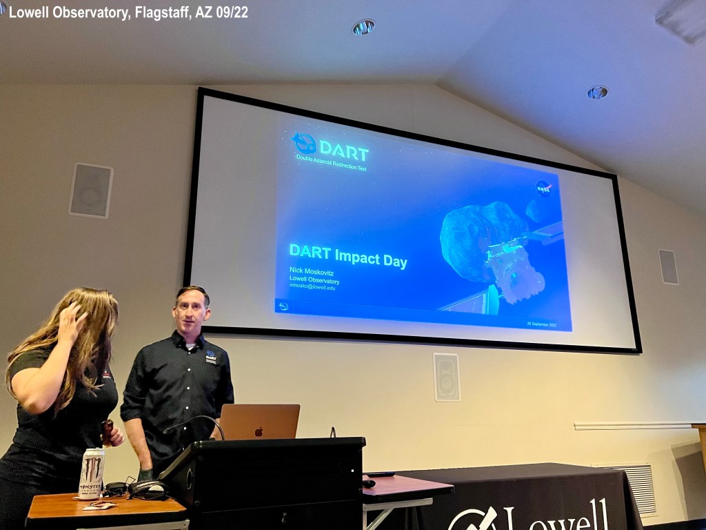 While in line, Kevin heard the couple behind us talking about Nick Moskovitz, and how he was going to give a talk at 6:30. Right before impact, Nick was ON NASA TV showing and talking about Lowell Observatory telescope and how it was used to find and map and help plan the entire DART program.