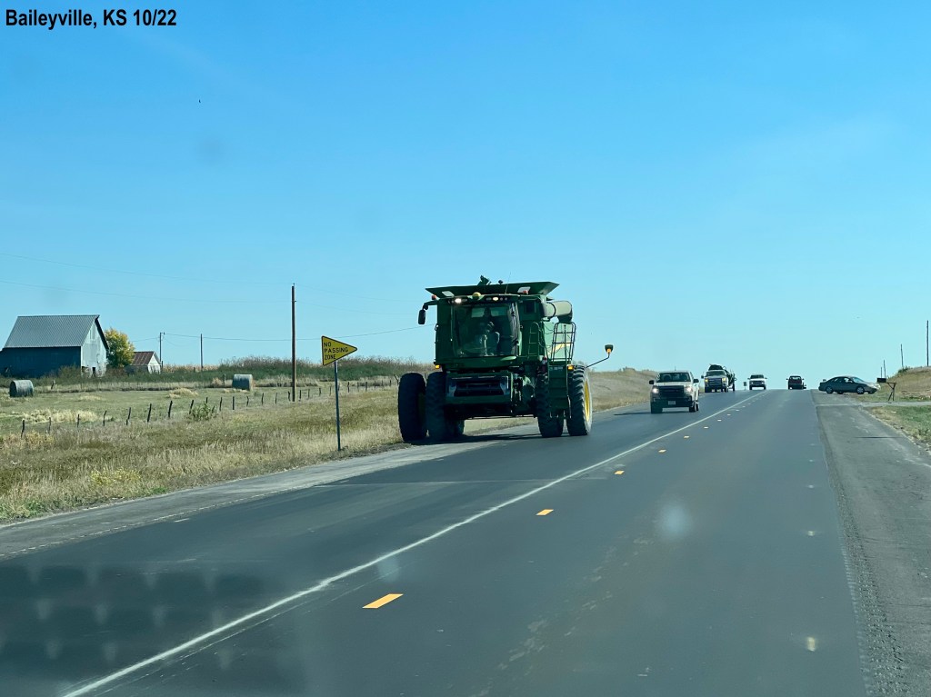 HUGE Combine With The Header Being Towed A Few Trucks Behind, Baileyville, KS 10/22
