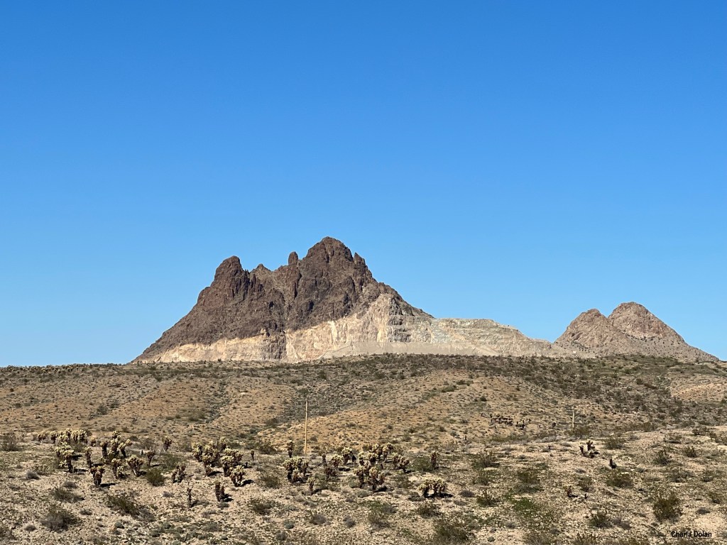 A ride was our thing to do the next day. While driving yesterday, over Route 66 east of Oatman, I saw on my Garmin RV 1090 the name of a road, Silver Creek. That road goes down the mountain and into town. We should drive it. 🙂 The road started as paved but then quickly turned to dirt. There were lots of signs saying not to shoot guns within a mile of the road…those signs were riddled with bullet holes! HAHA (Not funny but kind of funny!) We saw a lot of dirt roads perfect for ATVs and there were quite a few ATVs out and about.