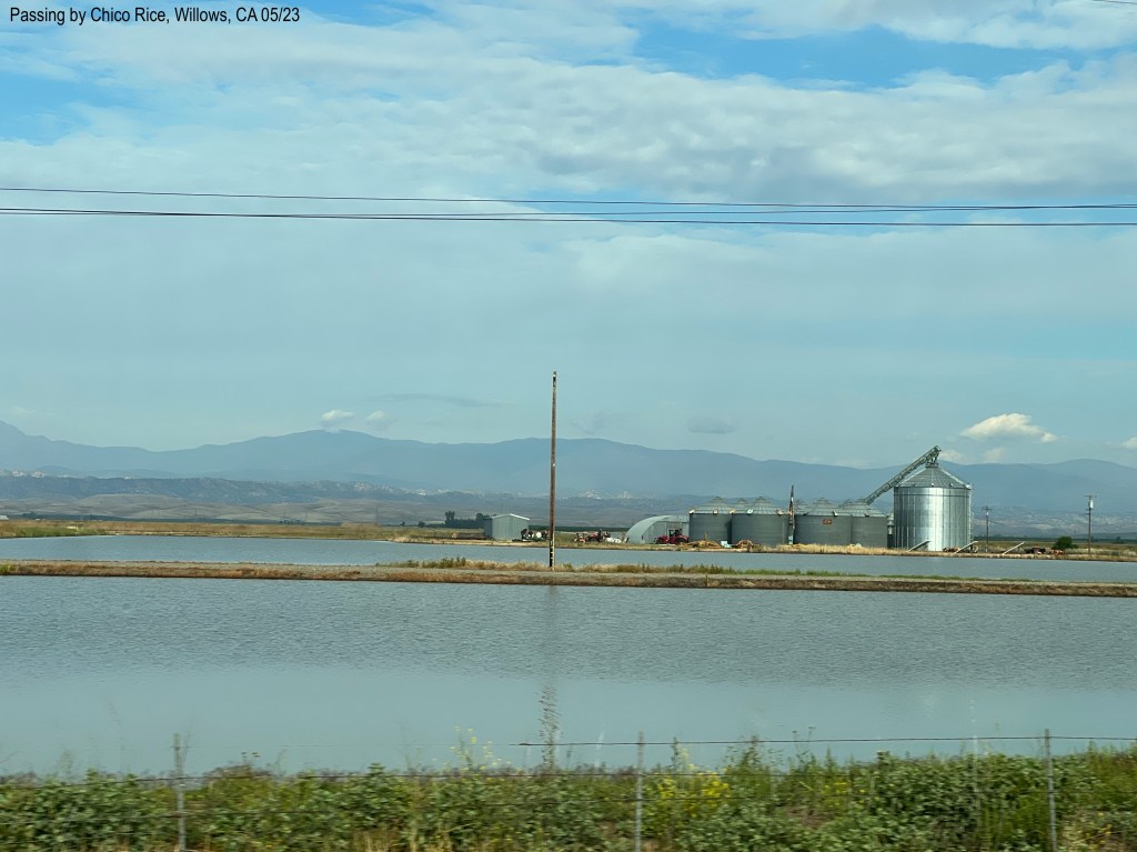 We passed Chico Rice Harvest Host where we had stayed for a night back in April. This time we saw the fields there full of water and sometimes green plants popped up. Ah, rice fields! We saw them along I-5 from Willows to Williams. So neat to come back here and see the difference. Plus, we also saw grape vines full of leaves where 6 weeks or so ago they were bare.