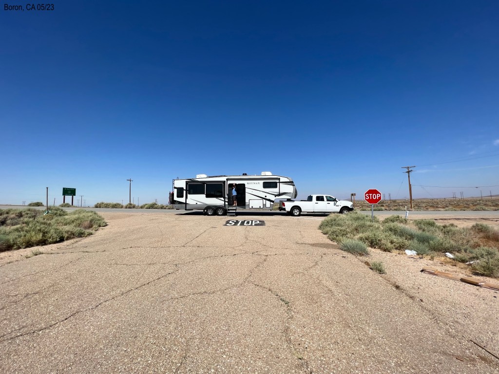 We set the alarm for 7:00am and were on the way quickly. Bakersfield is closer to the coast then Nevada. We drove straight east. There were mountains that had lots of cedar trees and then sage brush. We went through Tehachapi, where one of our niece’s husband grew up. It is on the top of the mountains. There are a lot of businesses and houses there. Down the road farther we saw lots of airplanes. Most look like Delta. We remembered there is a museum there. Neat. Then we saw Edwards Air Force Base. So cool to imagine seeing the shuttles land here. We decided we will have a weekend trip out here sometime. Stopped for a bathroom break in HOWE and saw the road we pulled off on is Borax. It has a visitor center plus Twenty Mule Team Museum. Kevin told me that it took that many mule to pull the wagons loaded with Borax. This will be a really neat place to come back and explore! We filled up at Barstow and then took I-40 to AZ. It wasn’t as rough a road as east of Kingman, AZ, but yeah, we could tell we were on it. (Later we found a shelf in the pantry had come dislodged.)