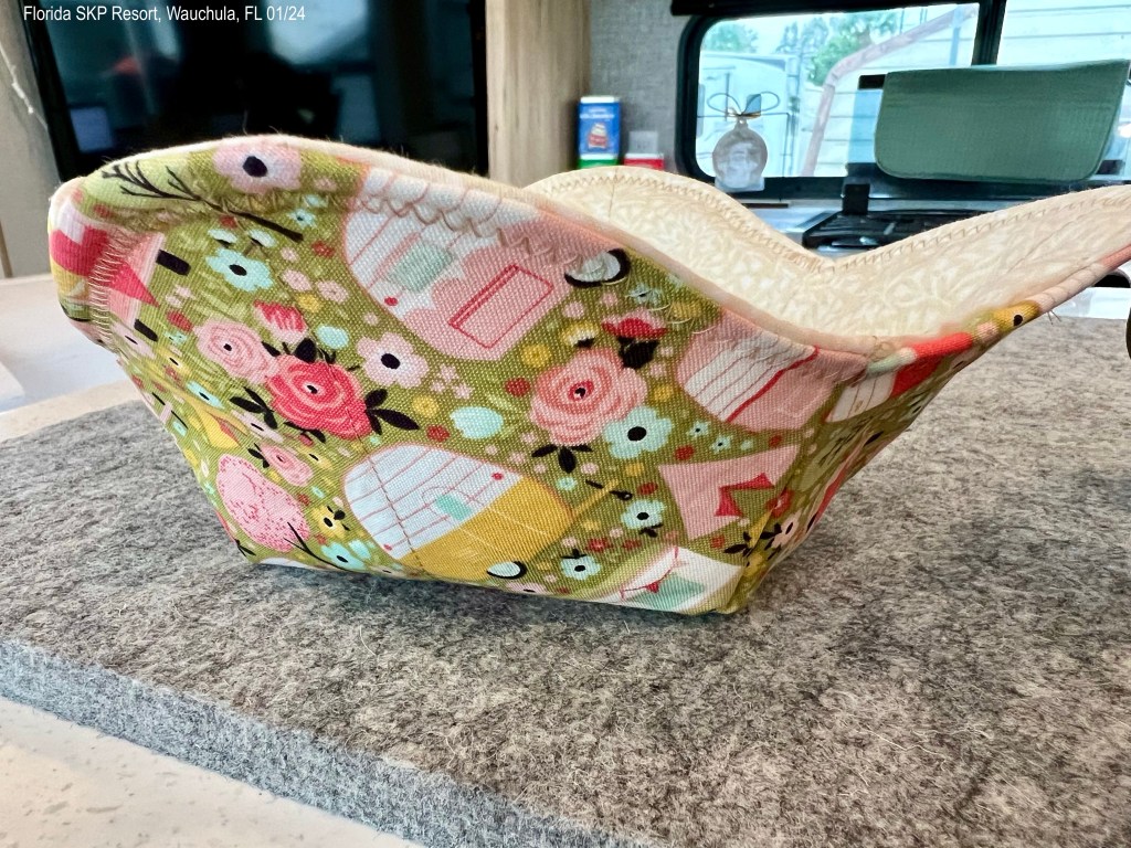Whoa! Here I was thinking you actually camped there….? It would not be a good look for me. 🙂 I like the bowl cozies. I can see where they would be nice passing around a hot bowl at a dinner. Nice job! It’s great to have hobbies. I do more hobbies when we are at home. I did purchase a diamond painting kit, but I haven’t found a good block of time to start on it. I look forward to reading about your visit with alligators!