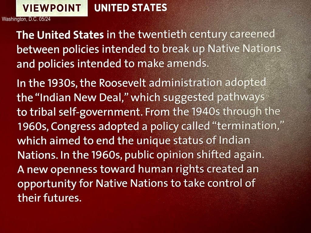Most of the display boards had a statement at the top and then Viewpoint Native Nations and next to it Viewpoint United States. They covered all areas of life.