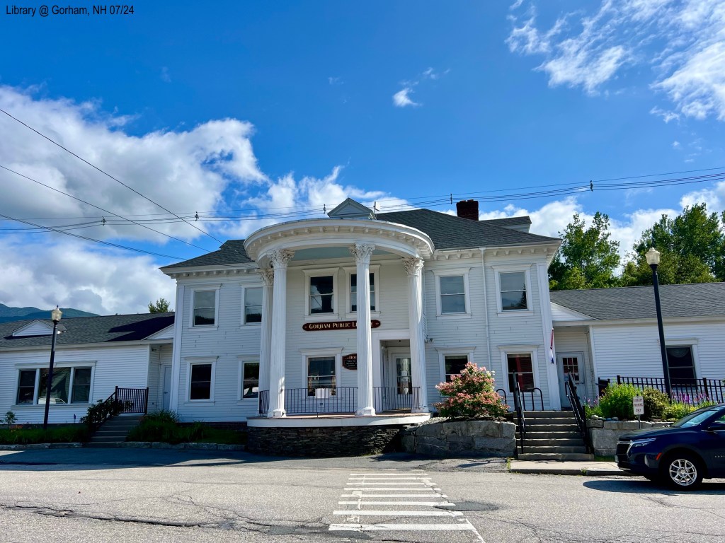 One day we decided to drive about 5 miles to Gorham library. I had read the history of the library when looking for it. The town had a library, it burned, books put in a city building for a library. Years later a man donated his fancy house, “a mansion” to be the library and it was moved to town. It was fun to see the different rooms inside.