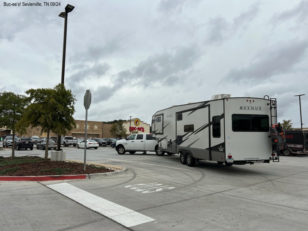 1. Charla, this post makes me miss you. It’s like we’re sitting in our camper talking about our travels! I am glad you were able to run away from the hurricane. I can just see Kevin throwing that right side fender in the dumpster! Good riddance, he probably thought! We once stayed at a fairgrounds campground, and we couldn’t find anybody to pay! So, we said thank you, Indiana, when we left. (That was about 6+ years ago.) I keep seeing signs for Buc-ee’s – and I’ve been wondering what “Girls Dinner” means. And I suspect I shouldn’t ever try Buc-ee’s nuggets. We have never been to Buc-ee’s. I would go just for the experience, but Dan 1) doesn’t like to shop (He makes a beeline, gets what he needs and he’s out. No browsing. 😦 ) 2) doesn’t like lines and 3) doesn’t like crowds. Strike three, and it’s out! And we both worry about pulling in there with a camper! Kevin is very sweet, but I would have said, “Well, there’s always tomorrow to go out to dinner!” I love Great Smoky Mountain National Park, and I look forward to reading your posts about it!