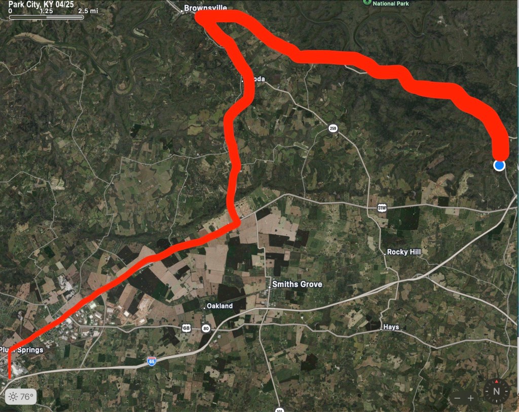 The Long Route Garmin Took Us Diamond Caverns RV Resort; See I-65 Close To The Blue Dot? HAHA