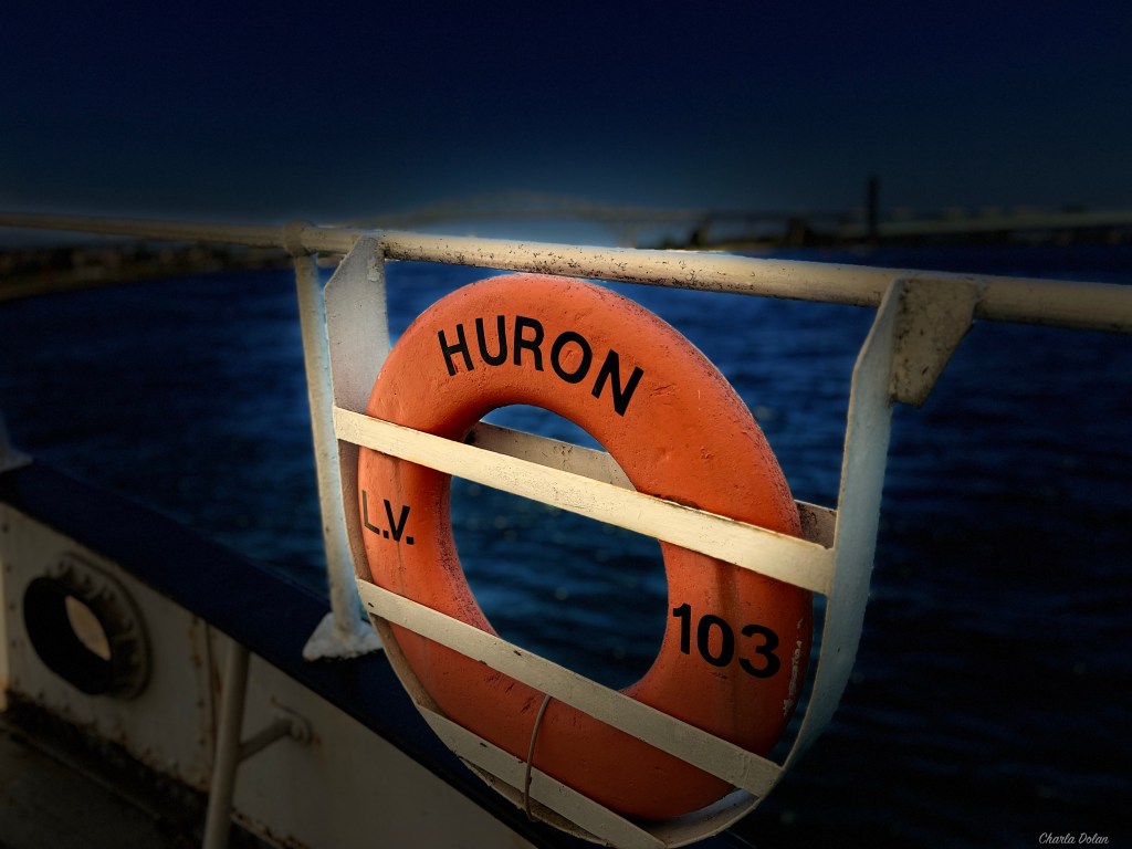 After the late lunch we went to the other part of the museum to the Huron Lightship. According to their sign, “Because Iron Ore was so important for the war effort, she was the only Lightship to stay on duty throughout World War 2. She served on Lake Huron from 1935-1970.” It has a crew of 11 men with 6 or 7 on at a time. They rotated off every other week. We enjoyed sitting along the Blue Water River Walk and watching the boats on the river.
