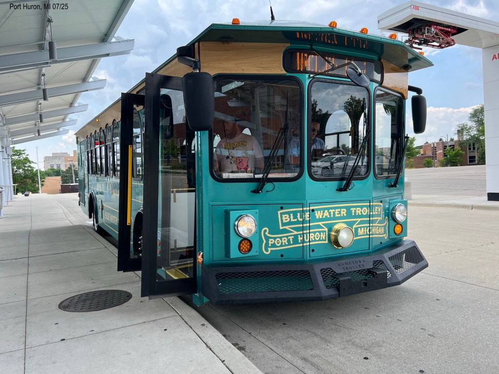 On Saturday we went back to Port Huron to the bus transit building to take a tour on the trolley. The lady at the Edison Museum the other day recommended it and yes, it only cost $0.10 (ten cents) a person to ride. It is an hour long tour with the driver talking the whole time. Why ten cents? Because that is what was charged with horse and buggy for a tour back in the olden days, plus, it is funded by the city. HA We got on the trolley – a nice one with A/C along with 3 other people. Kevin happened to ask the driver if there was a script. (I am deaf.) I didn’t even think about it. Tyler was nice and looked in a cabinet for something. He gave me a paper that listed the stops on it. Then we started. Soon Tyler pulled over and said something to Kevin. Tyler texted Kevin a link to his word document of his own script. I was able to read it on the iPhone while on the tour. That was amazing! He gets an A+ and a thank you letter to him and his supervisor. Kevin said it would have been hard to interpret because Tyler talked really fast. HA I was thrilled! One of the things Kevin told me later, it wasn’t in the script, is that the American Red Cross was first deployed here to Port Huron – they had a devastating fire. So many things to see. One old church is where the Canadians would cross over the river to attend church because Port Huron was the only place that had the England Church in the area! LOL We gave Tyler a big tip and thank you.