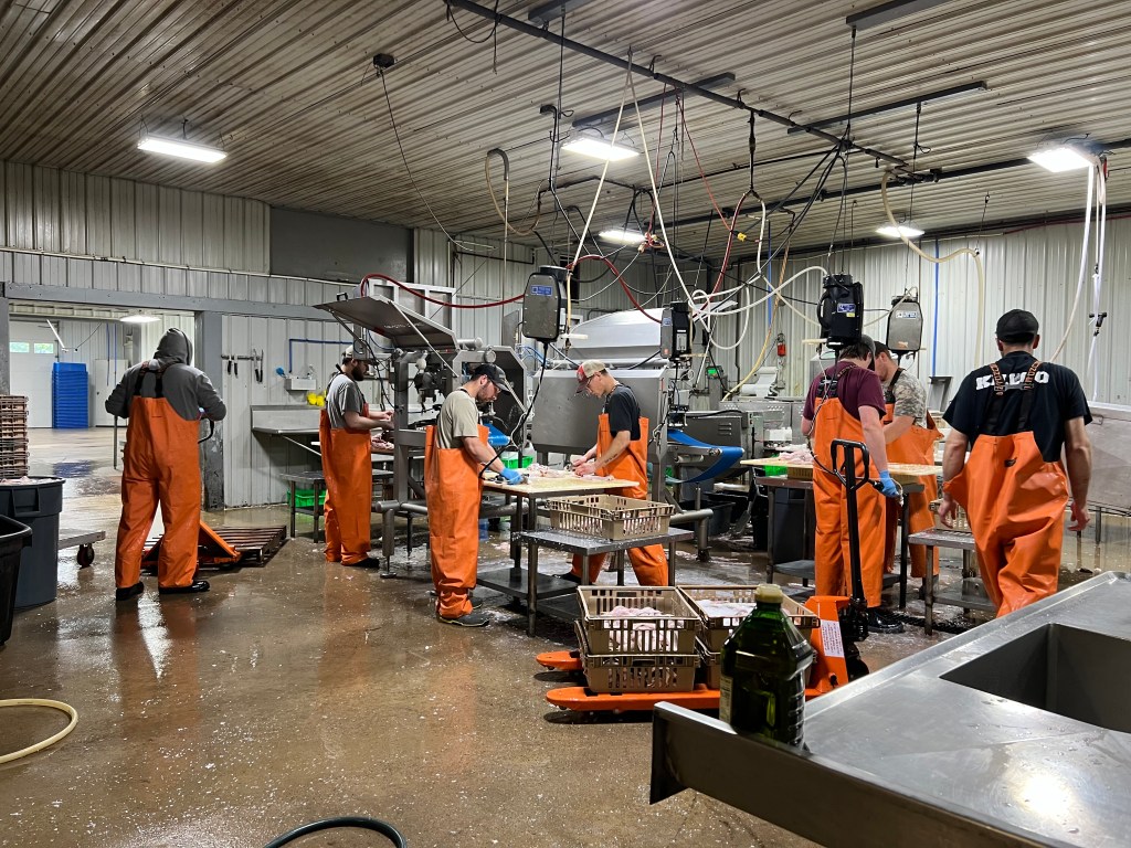We went a short ways to Massey Fish Company. The space to buy stuff is tiny, fits about 3 people. The gal gave us a sample of smoked lake trout and it was fabulous! Neither Kevin nor I would have guessed it to be trout. Trout is famous out of this Lake Huron. We got a pound of that plus a pound of smoked salmon. She said I could take a picture; they were processing the fish they caught this morning. For dinner I made lake trout fish sandwiches. It was very tasty.
