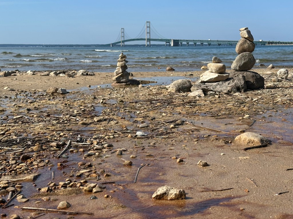 A few of Kevin’s photos from the beach at the cemetery. He took his camp chair and walked down to the beach and watched the boats, Mackinac Bridge, all sorts of ships, and played on his iPhone. He enjoyed his time there.