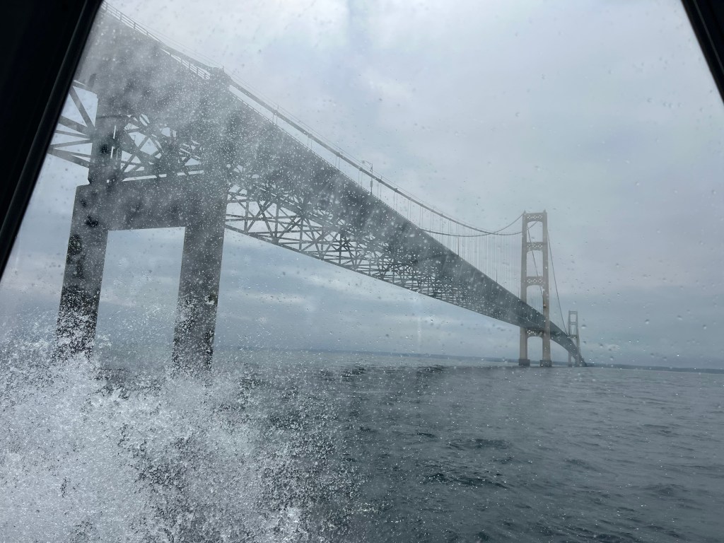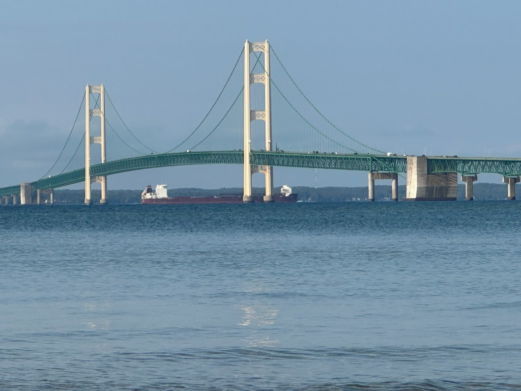 The ferry was very fun. We sat in the very front. It was fun to watch the crew with the ropes. The captain took us under and around the Mackinac Bridge. That was a delight, as most ferries don’t do that
