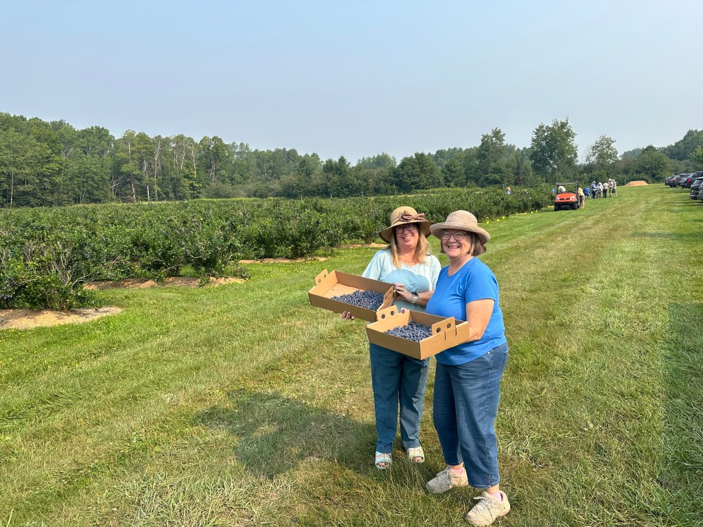 1. Yes, a motorcycle shop next to a quilt shop is brilliant! 🙂 I am guessing it just happened that way and what fun options while there. 🙂 After picking blueberries, that evening our friend, Richard, made a blueberry clobber in his air fryer. It was delicious! Thanks, always fun to meet up with friends. 😃