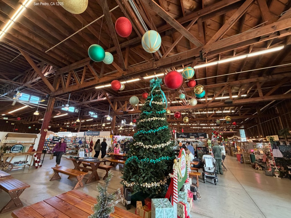 We were too early to check in to the hotel. Kevin had found “Crafted at the Port of LA” and we went there. https://www.craftedportla.com/ It is a old warehouse from the 1940s. We like seeing old buildings repurposed. There are hundreds, according to their website, of local artisans set up in booths. We didn’t buy anything but it was fun to walk around and see the talent of so many people. Good variety, too. Someone there recommended 22nd St Landing Seafood Grill & Bar. The food was just okay. I had fish tacos but they were too crispy and no dressing or sauce. Very dry. However, the view was very nice; we were right on the harbor. Fun to see the boats come in and out plus in the distance see container ships going out of San Pedro docks.