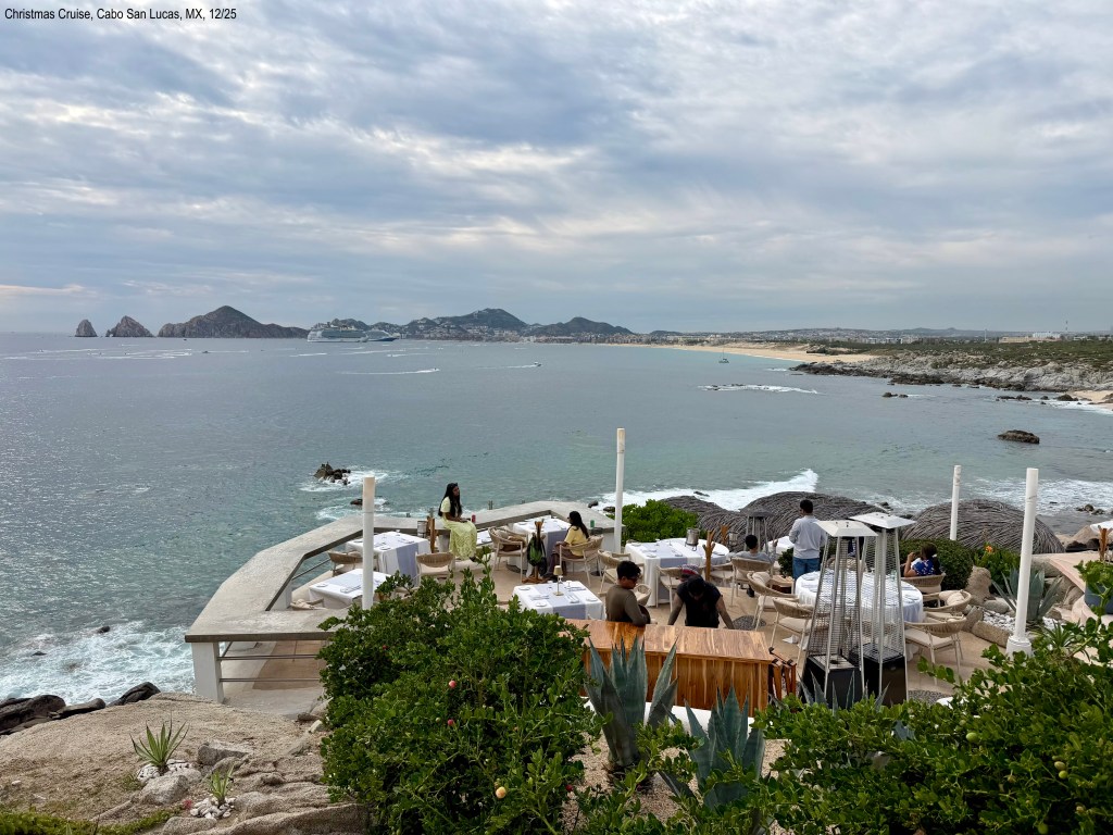 We don’t arrive in Cabo San Lucas until around 12:30 p.m. We were watching along the pool deck and we saw several whales and a bunch of dolphins. The dolphins love to play in the ship’s wake. Oh, I got some great pictures!!! The harbor here is too shallow for cruise ships so you have to use a tender. Then to Coastal Tour. It was so wonderful to have my interpreters on the bus and be able to learn the history and stories.