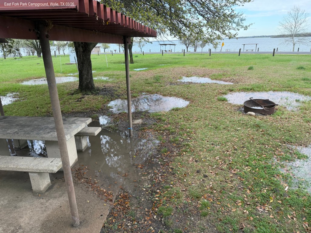 We got to this Corp of Engineers campground in Wylie, Texas, at 2:10 p.m. Check in is at 3:00 p.m. but he let us in no problem. We stayed here for 2 weeks a year and a half ago. The sites are huge, spidery, mosquito-y, and wet with all the rain they had the other day and humid-y. The lake is right behind our site and fun to watch the boats. We are here because I have an aunt and uncle who live nearby. Always love spending time with them. (More about that next week.) We also have some dear friends who live about an hour away. We love seeing them, as well.